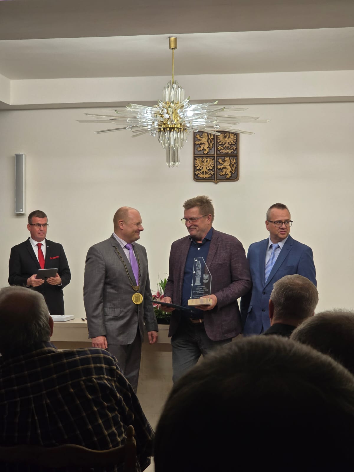 Jedním ze dvou oceněných byl i náš dlouholetý hráč, pan Robert Tůma, který obdržel ocenění in memoriam. Cenu od starosty města Ing. Romana Foršta převzal jeho syn, který v 80. letech také krátce v oddílu působil, pan Robert Tůma ml. Za oddíl se slavnostní akce zúčastnili tři z čtyř zástupců oddílu, kteří se s panem Tůmou znali shodou okolností nejdéle: Jaromír Volf, Ján Bačo a Pavel Padevět, který návrh na ocenění jménem celého oddílu na jaře podal.